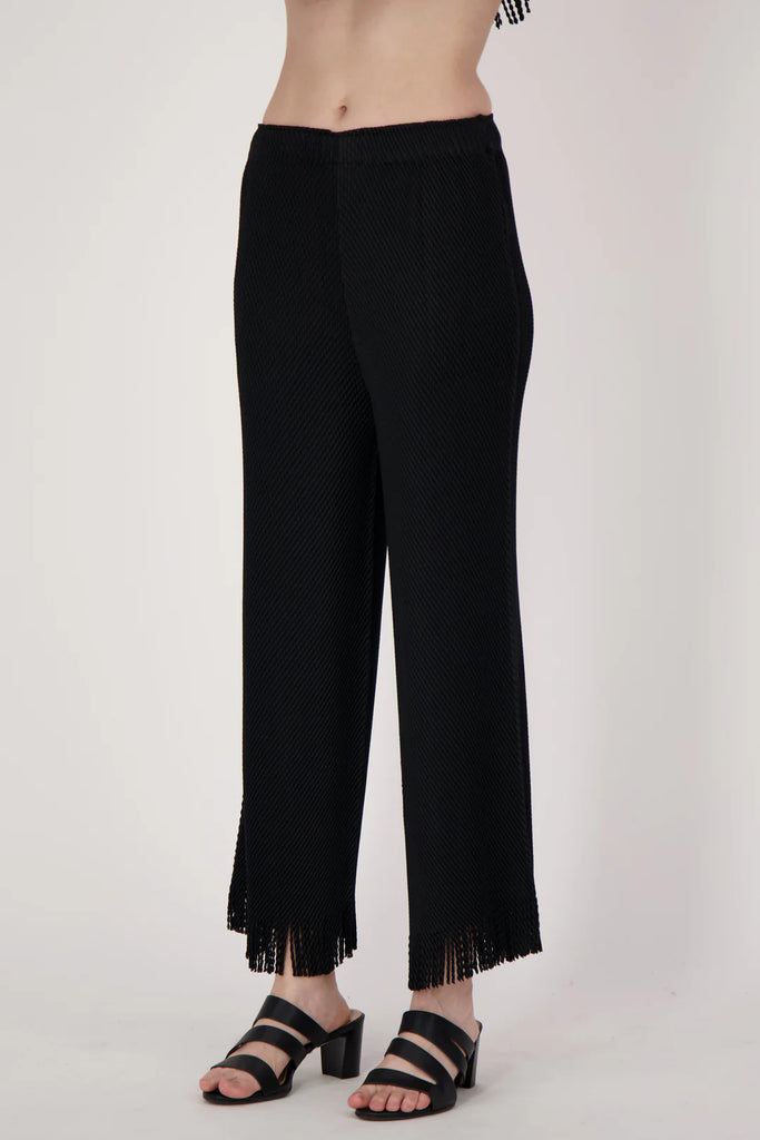 Spanner Pleated Pants with Fringe Trim
