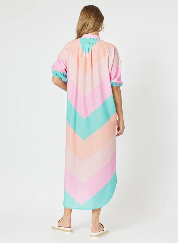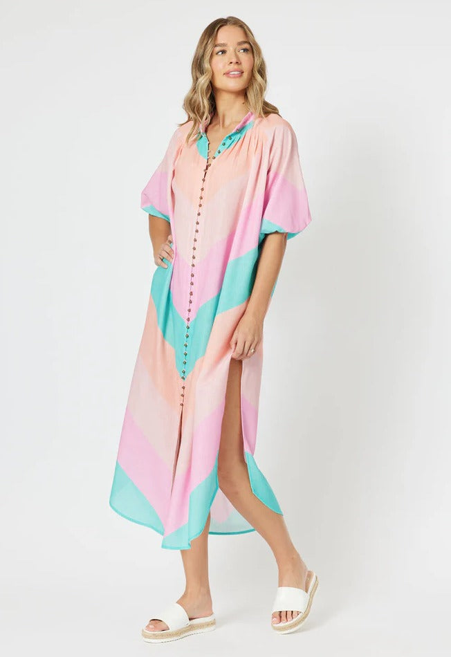 Introduce a burst of color to your wardrobe with the vibrant Gelato Dress by Hammock & Vine. This versatile mid-length dress offers both comfort and style for any casual or special occasion. The flowing silhouette and elasticized cuffs provide great arm coverage, making it perfect to wear over a swimsuit or for a night out. Made from polyester and true to fit, this dress is a must-have for your wardrobe.