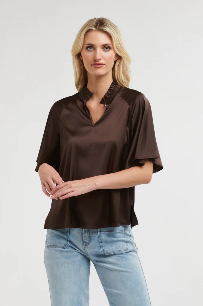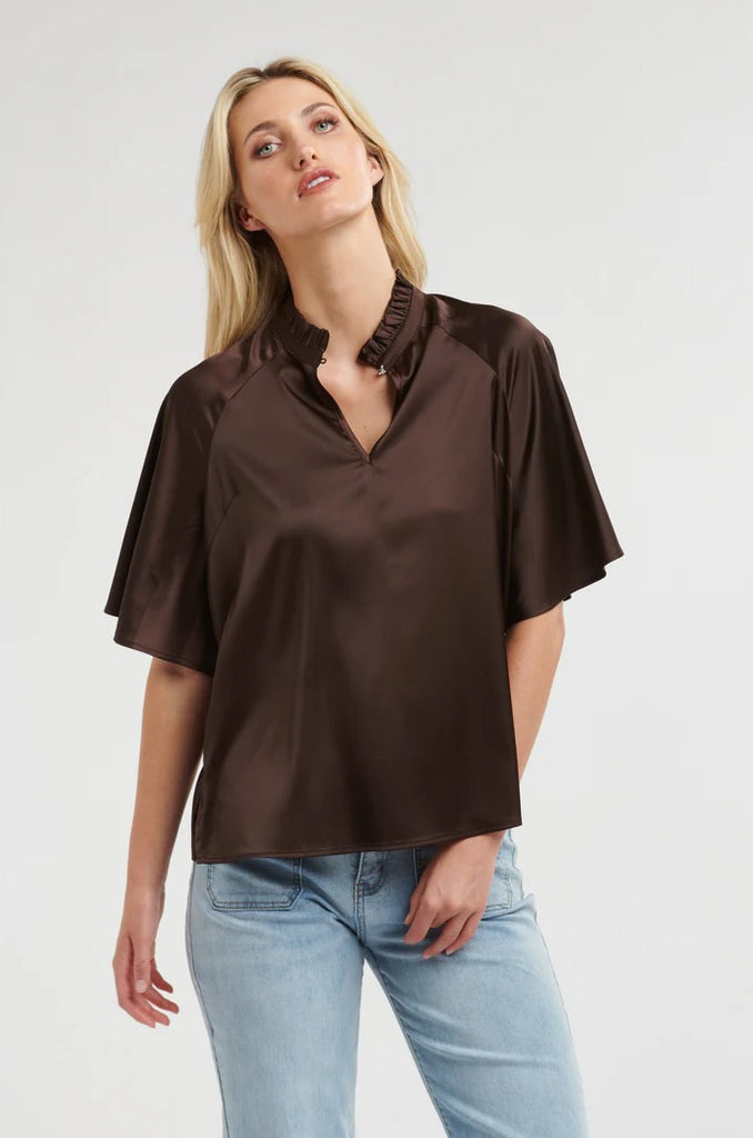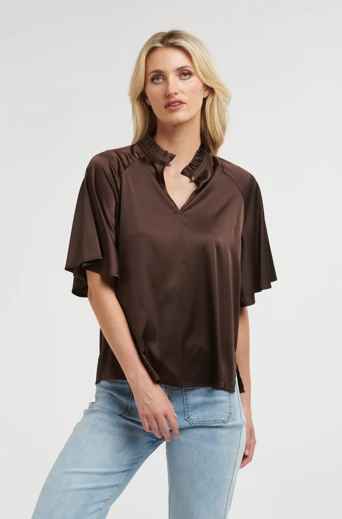 Elevate your style with the 365 Days Angelica Satin Top in Chocolate. This luxurious top features a smooth satin material that adds a touch of elegance to any outfit. With its versatile design, it's perfect for any occasion, making it a must-have addition to your wardrobe. Upgrade your look with this must-have top.