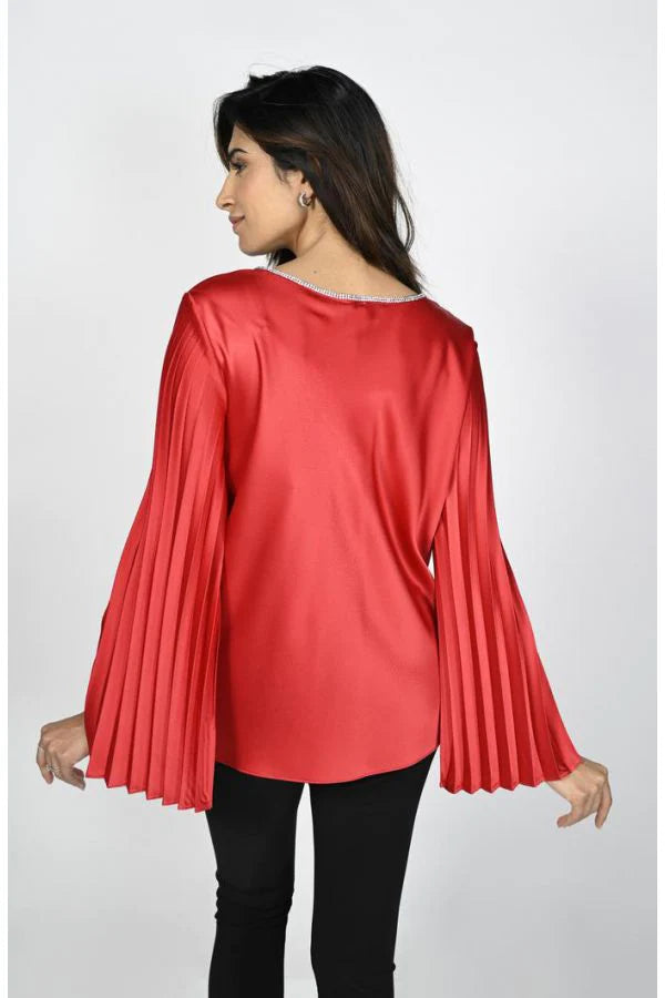 Mix and match Frank Lyman Pleated sleeve Top & Long Skirt tomato Red