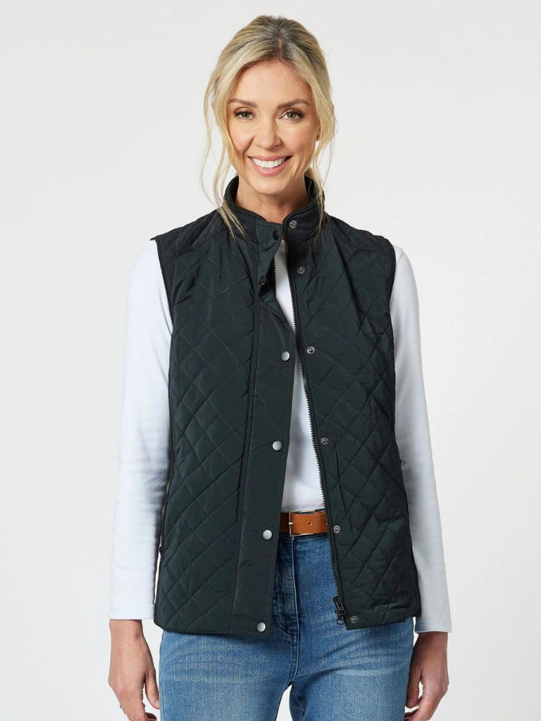 The Brighton Puffer Vest, the perfect wardrobe essential that will add warmth to any outfit. Features include: a quilted finish with lightweight fill, stretch ribbed panels on the sides for added shape and comfort, 2-way front zipper with snap button closures, sleeveless design, stand style collar with knit trim for comfort, fully lined interior and functional twin side pockets. You will love the versatility of this classic fit quilted vest, it will keep you looking both warm and stylish. Layer over a knit jumper or a classic white tee, add our great fitting denim and you have the perfect outfit for everyday style.