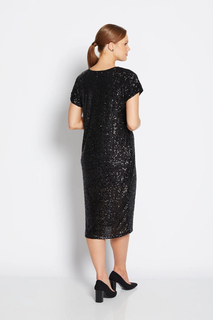 Shimmering with subtle glamour, the Philosophy Academy Reversible Dress is a versatile piece designed for effortless elegance. Cut in a relaxed fit that drapes beautifully, it offers the option of wearing it with a flattering V-neckline or reversed as a chic crew neck, giving you two looks in one. The fluid midi length and understated sparkle make it perfect for cocktail evenings, special occasions, or simply adding a touch of shine to your wardrobe.
